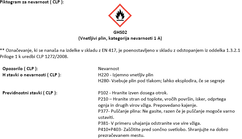 Plinska kartuša z ventilom Supergas vsebuje visoko zmogljivo mešanico propana (30 %) in butana (70 %), odporno na nizke temperature. Primerna je za ročne plinske gorilnike, spajkalnike in druge naprave. Opremljena je z varnostnim ventilom z navojem 7/16″, ki preprečuje uhajanje plina in zagotavlja varno uporabo. Izdelano v skladu s standardom EN 417.